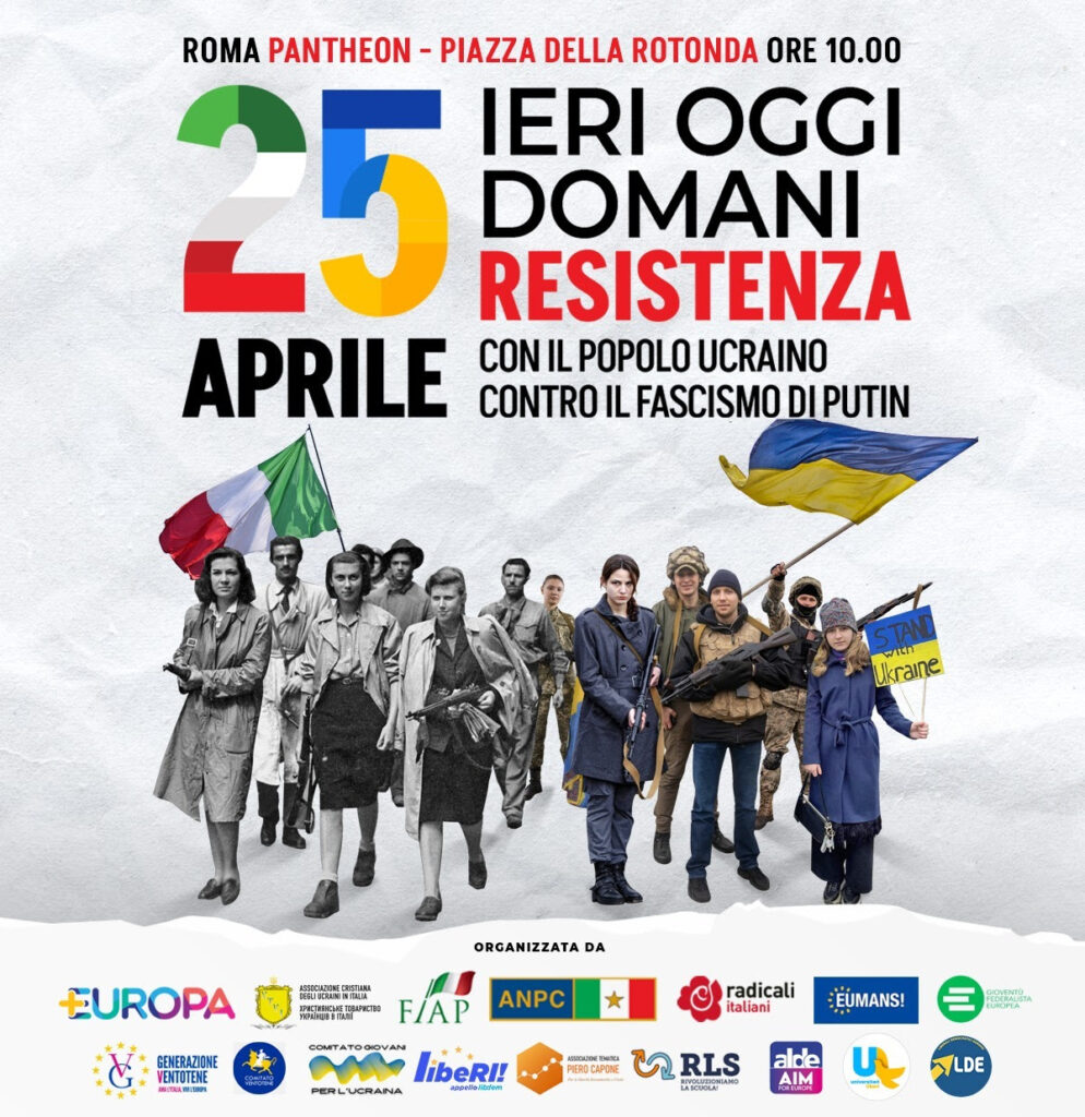 Il 25 Aprile, anche la Gioventù Federalista Europea, come tanti altri movimenti, partiti e associazioni, sarà in Piazza della Rotonda a Roma al fianco di diverse associazioni partigiane e degli ucraini in Italia.