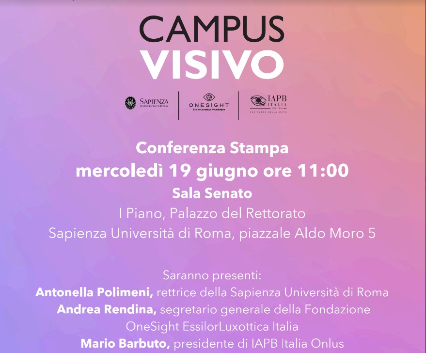 Al via “Campus Visivo”, l’iniziativa di prevenzione visiva promossa dal Dipartimento di Organi di senso di Sapienza Università di Roma, dalla Fondazione OneSight EssilorLuxottica Italia e dall’Agenzia Internazionale per la Prevenzione della Cecità IAPB Italia Onlus, con l’obiettivo di intervenire in maniera significativa sulle problematiche della vista della comunità universitaria.