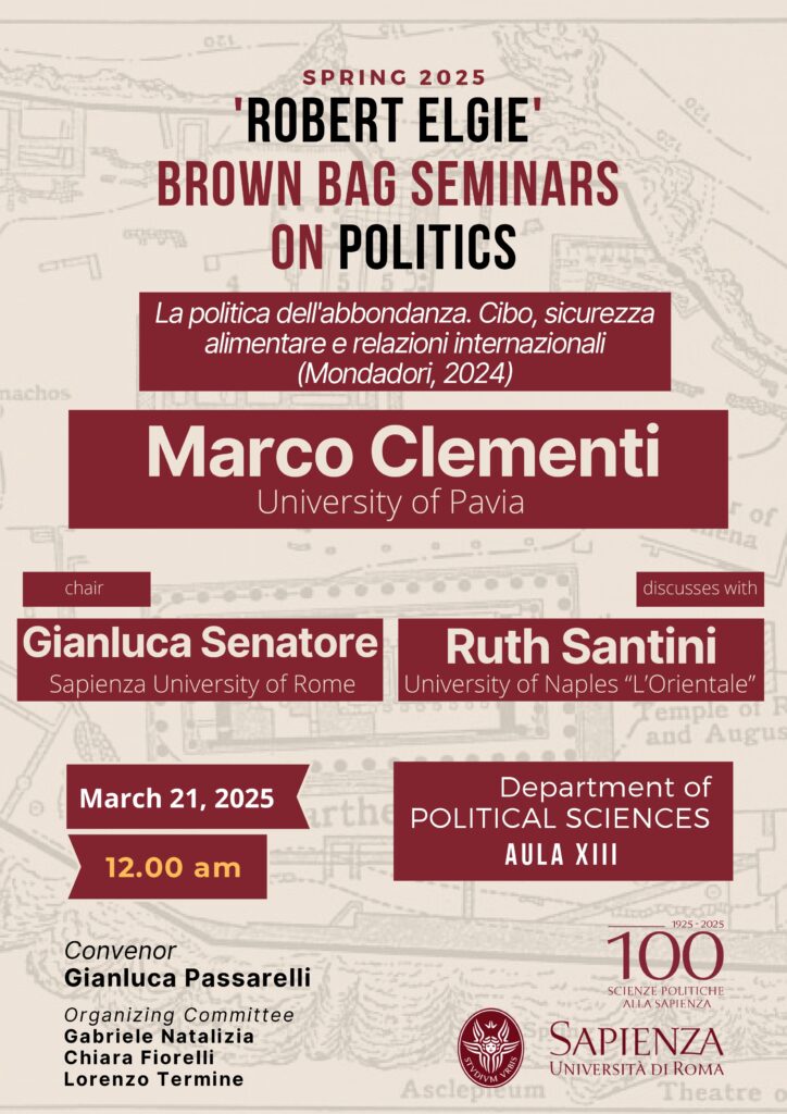“La politica dell’abbondanza. Cibo, sicurezza alimentare e relazioni internazionali” – Incontro con i proff. Marco Clementi (Univ. Pavia) e Ruth Hanau Santini (Univ. Napoli “L’Orientale) Gianluca Senatore (Sapienza Univ. Roma)