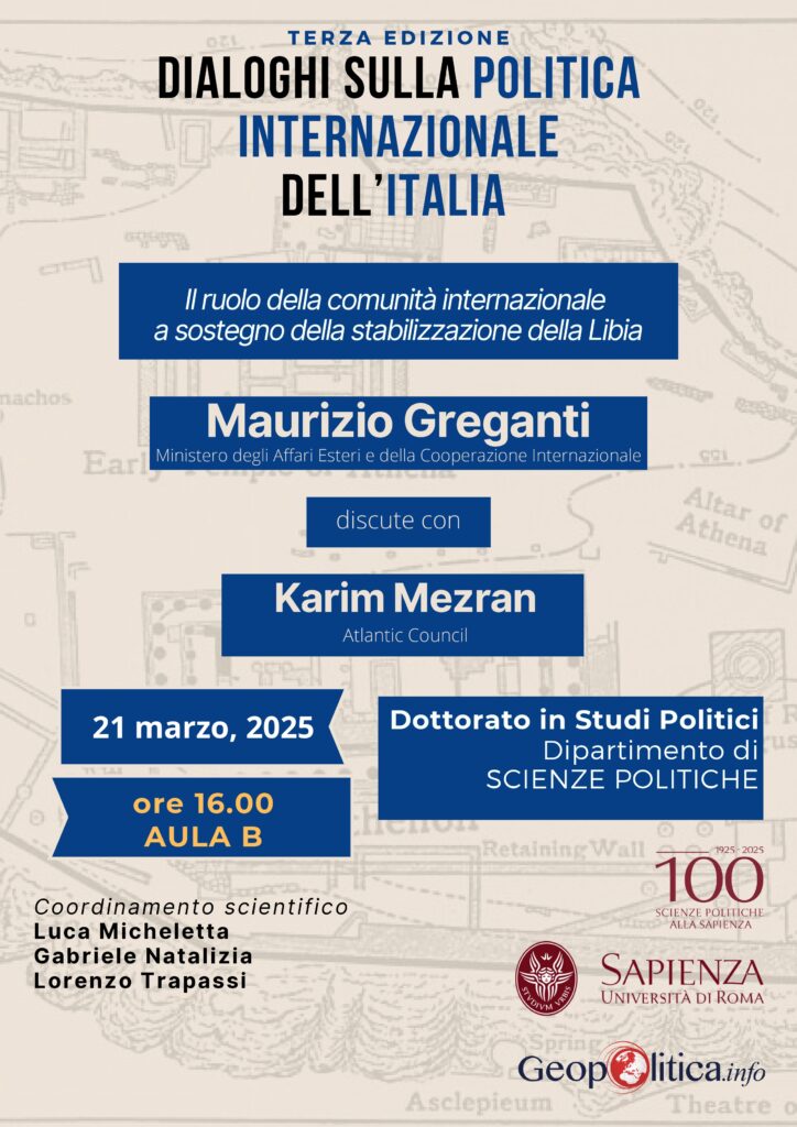 “Il ruolo della comunità internazionale a sostegno della stabilizzazione della Libia” – Incontro con il Min. Plen. Maurizio Greganti (MAECI) e il prof. Karim Mezran (Atlantic Council)