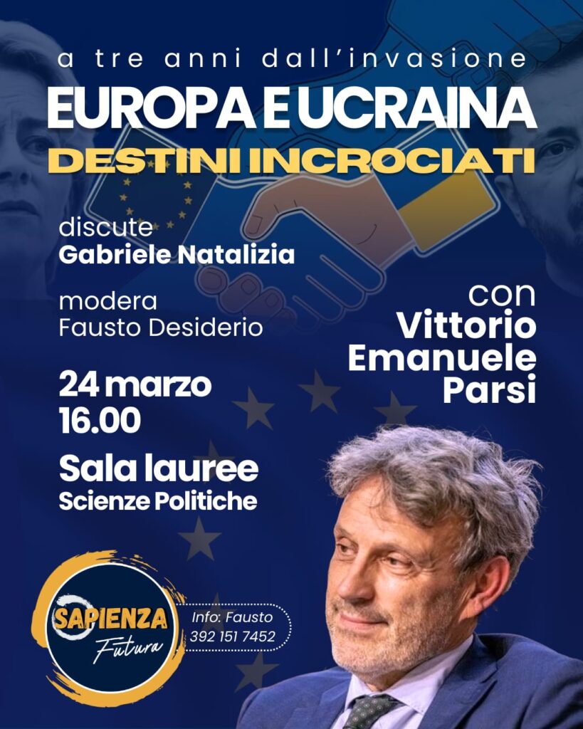 “Europa e Ucraina. Destini Incrociati” – Incontro con i proff. Vittorio Emanuele Parsi (Univ. Cattolica del Sacro Cuore di Milano) e Gabriele Natalizia (Sapienza Univ. Roma)