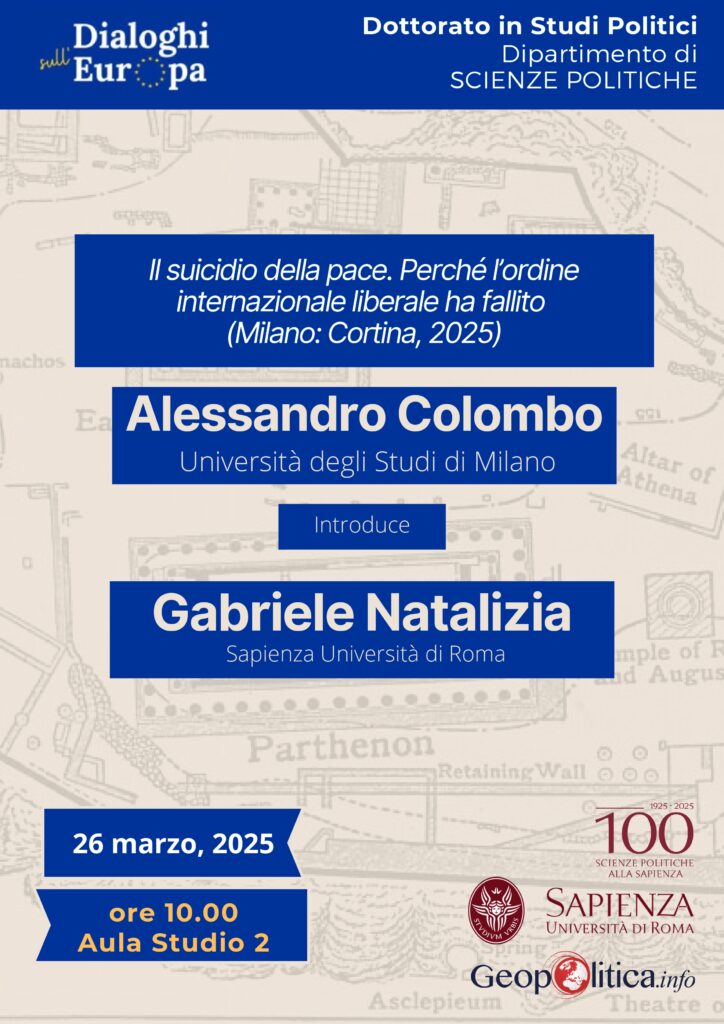 “Il suicidio della pace. Perchè l’ordine internazionale liberale ha fallito” – Incontro con i proff. Alessandro Colombo (Univ. Milano “La Statale”) e Gabriele Natalizia (Sapienza Univ. Roma)