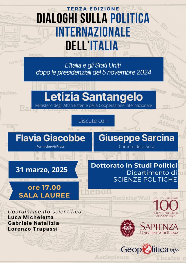 “L’Italia e gli Stati Uniti dopo le presidenziali del 5 novembre 2024” – Incontro con la Cons Amb. Letizia Santangelo (MAECI), la DIr. Flavia Giacobbe (Formiche / AirPress) e il Dott. Giuseppe Sarcina (Corriere della Sera)
